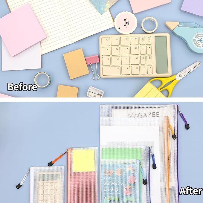 - 【Translucent Design】: Due to the moderate transparency of the translucent mesh, these mesh zipper pouches can help you quickly identify and find what you need, which is desirable for organizing and protecting office supplies.