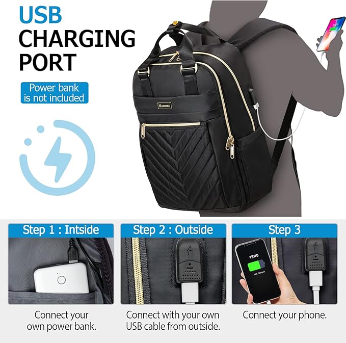 - USB Charging Port:The travel backpack is equipped with an external USB port and USB conversion cable, providing you with a more convenient way to use your mobile phone when walking or traveling. No matter where you go, Liokesa laptop backpack will make your travel and travel more convenient.