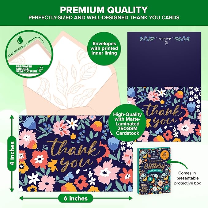 - IDEAL FOR ALL OCCASIONS - These glittery thank you card packs are ideal for all occasions. You can send these appreciation cards with envelopes & box of thank you cards with envelopes for birthdays, weddings, graduations, and any other occasions.