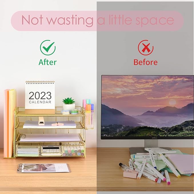 - đăDesktop DecorăOur desk organizer not only keeps your workspace organized but also adds a touch of elegance to your office or home decor. With its classic metal color, it complements any style and showcases your professional and clean work style. Choose OPNICE desk organizers and accessories for a workspace that looks and feels great