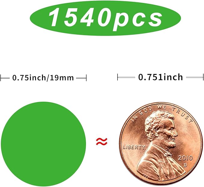 • 🌷10 colors-Bright Colored Labels Stickers,1540 PCS 0.75 Inch diameter color coding dots round stickers, 70 pieces per sheet.