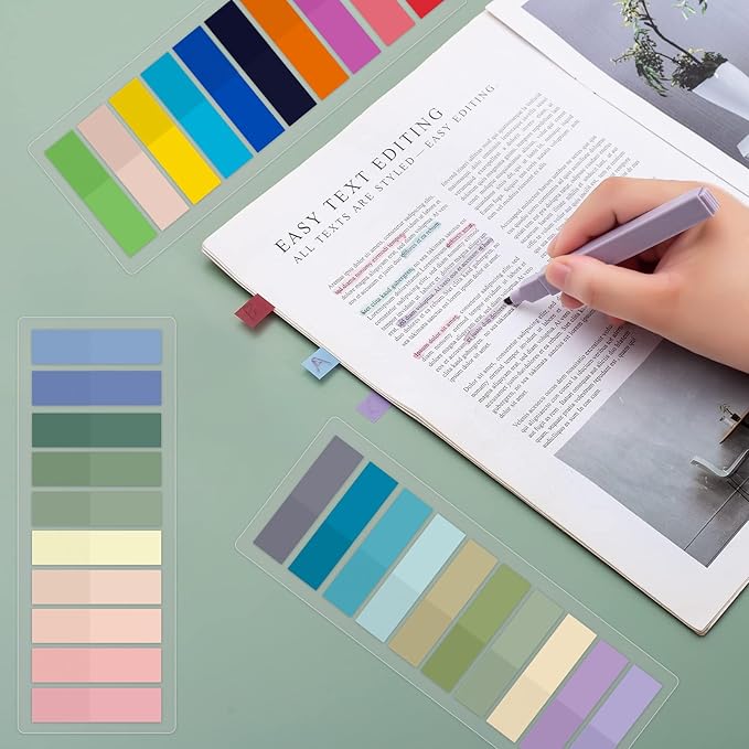 - 【Size and Quantity】Our Transparent Morandi Sticky Tabs measure 1.73 * 0.43 inches, and comes with 2400 sheets. These compact and convenient sticky tabs are designed to fit seamlessly into your daily life. Whether you're organizing your notes, marking important pages in a book, or leaving reminders for colleagues, these sticky tabs are the perfect size for any task. With 12 sets in one package, you'll have plenty to use for all your post-it notes, school supplies, and sticky note needs.