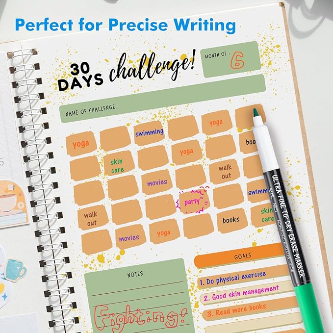 - 0.7mm ultra fine tip dry erase markers perfect for precise writing and detail drawing.