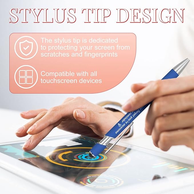 Colarr 24 Pcs Employee Appreciation Pen Ballpoint with Stylus Tip Pen 1.0 mm Black Ink Multicolor Smooth Motivational 2 in 1 Ballpoint Supplies for Coworker Thank You Gift (You're Awesome)