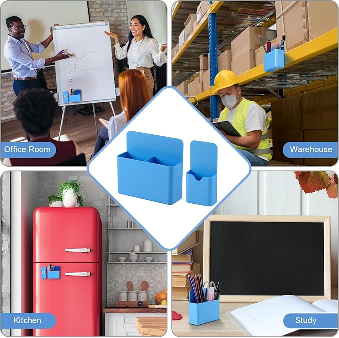 - Simple and Practical:Our magnetic pen holders are suitable for holding pens, pencils, dry erase markers, erasers, rulers, children's scissors and other office, home or school supplies. Also can be served for refrigerator, whiteboard, locker or other metal surfaces.Keep your stuff always organized!