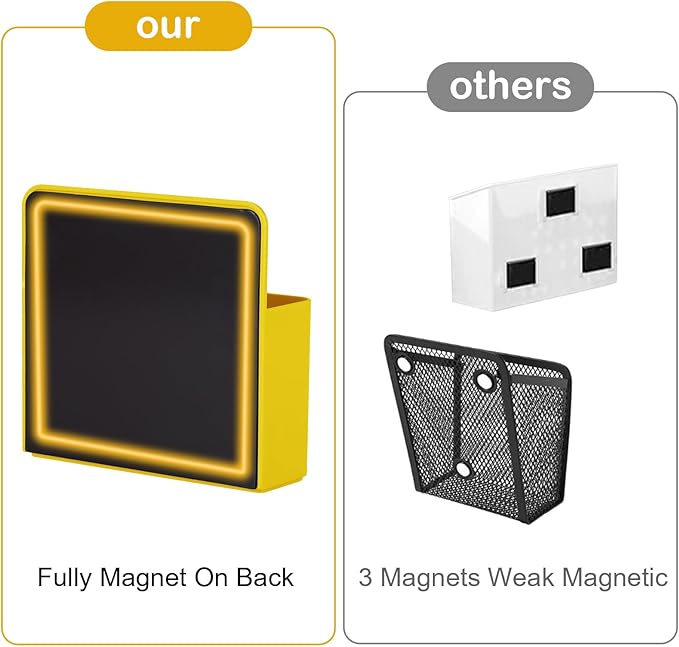 - Extra Powerful Magnets:A strong magnet is fixed into the whole back of this pencil holder. Dry erase marker holder could securely attach to any metal surface without sliding and falling.However, it ONLY fits for metal surface, not suitable for glass board or plastic board.