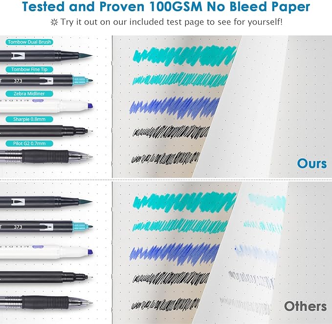 - 【Tailored for Bullet Journaling Lovers】Our UPGRADED dot journal notebook includes SPECIFIC FEATURES such as index, key, and test pages, making it stand out in the market, surpassing other ordinary dotted notebooks. The thoughtful design is perfect for both green-hand and experienced journalists. Your ideas deserve a notebook as professional as this.