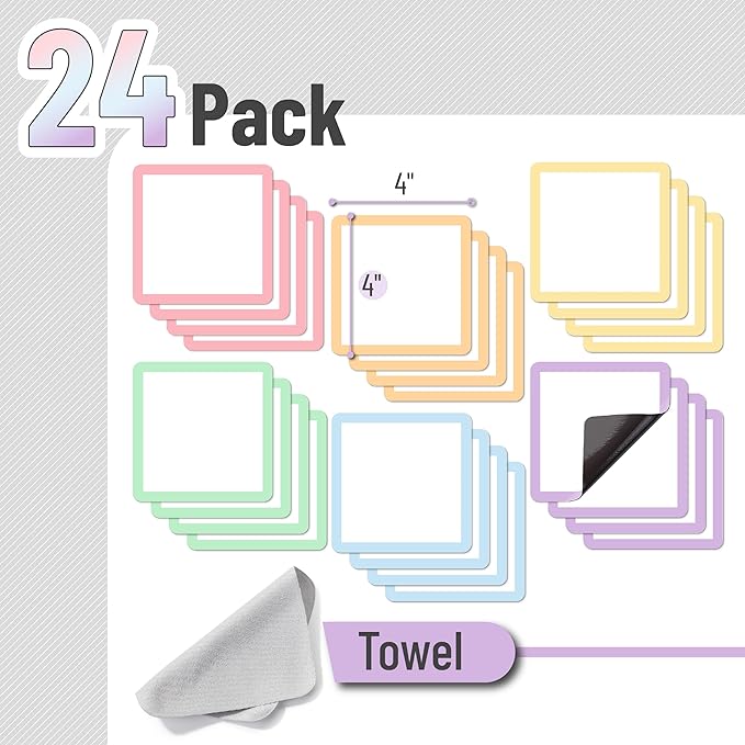 Mr. Pen- Dry Erase Magnets, 4”x4”, 24 Pack, Colorful Dry Erase Magnetic Labels, Magnetic Dry Erase Labels, Magnet Labels, White Board Magnets, Dry Erase Board Magnets, Magnetic Name Tags Reusable