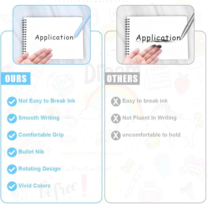 - 🎁【PERFECT GIFT PENS】Beautiful black ink pens are perfect as gifts for teachers, friends, colleagues, family members, girls, teens, as well as children. Also suitable for various occasions such as bridal showers, bachelorette parties, birthdays, team gifts, classroom rewards, thanksgiving, children's day, graduations and more. Or just to add a touch of sophistication to your study or desk at home!