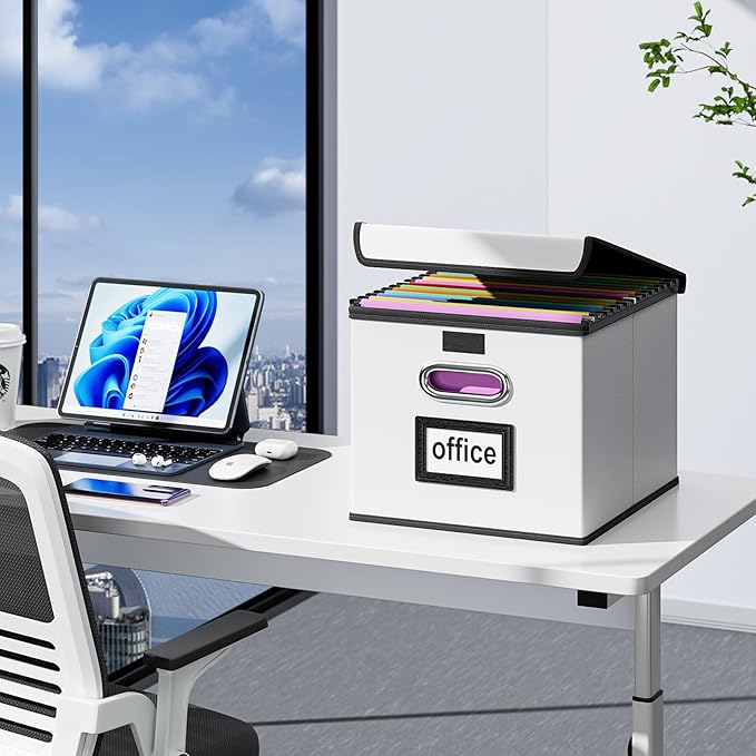 - Unique Functional Design - Our file boxes both sides are equipped with practical PVP slide rails, which can not only prevent the two sides of the file storage box from loosening, but also facilitate the sliding of the file folder, which is very suitable for hanging file folders. The metal handles on both sides allow us to easily move the storage box, and the label slot on one side facilitates our classification. Functional features and a beautiful design create the best filing box organizer.