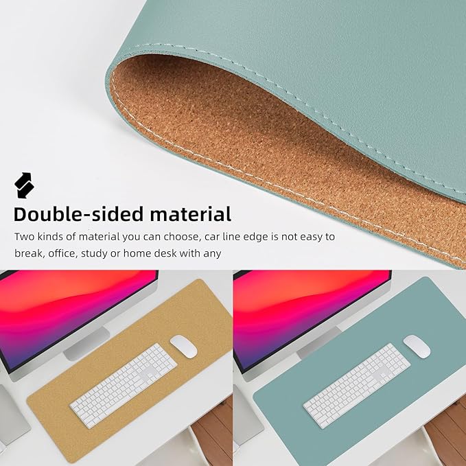 - Elevate Your Workspace: Our reversible desk pad is designed to complement any office or home desk with its premium materials and elegant black thread stitching. The natural cork base provides extra grip to keep your desk mat in place.