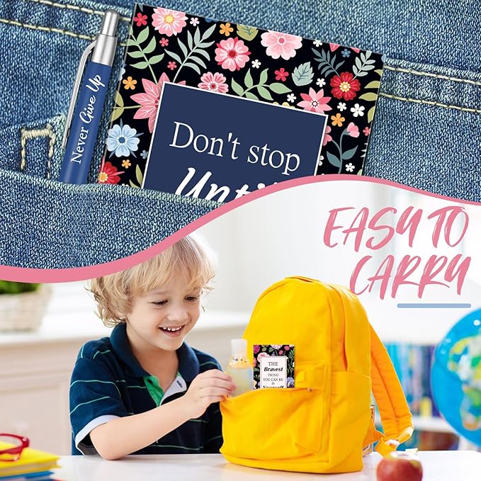- Portable and Adorable: measuring approx. 3.35 x 4.72 inches/ 8.5 x 12 cm, our motivational notepads are lightweight and compact, small in size yet provides enough space to write your notes; The inspirational pens are about 5.51 inches/ 14 cm long, you can put the inspiring notebook and pen set in your handbag or carry them around, will not take up much space for you
