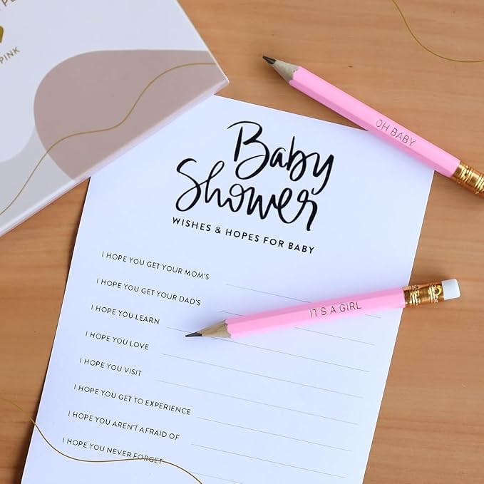 - BEAUTIFUL DESIGN: Show your guests that you have an eye for detail and quality. Our pink wooden pencils have a gold ferrule, a white eraser, and three gold foil designs: "IT'S A GIRL", "OH BABY", "♥". These are ideal for any event centered around babies and love.