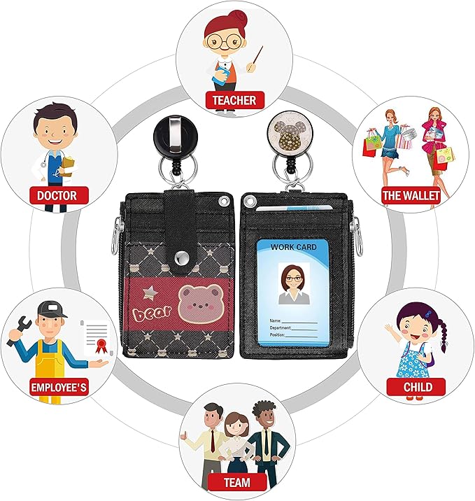 - ★【Product Features】: Clear and sturdy ID window, fits 4 cards slots with secure snap button cover and key ring, zipper wallet pocket for change, keys, credit card, ID card, durable nylon lanyard, definitely the best reliable and practical badge holde.