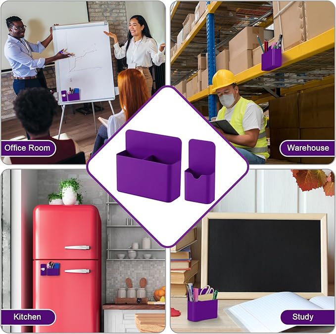 - Simple and Practical:Our magnetic pen holders are suitable for holding pens, pencils, dry erase markers, erasers, rulers, children's scissors and other office, home or school supplies. Also can be served for refrigerator, whiteboard, locker or other metal surfaces.Keep your stuff always organized!