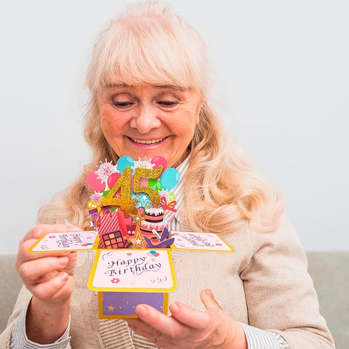 - PERFECT GIFT IDEA - This cute 45th birthday pop up card is a perfect gift idea for friends, mom, dad, sister, brother, husband, wife, coworker, colleagues.