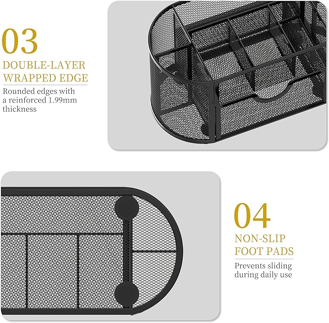 - [ ๐๐ซ๐จ๐๐ฎ๐๐ญ ๐๐ข๐ณ๐ ] Mesh pen holder size 8.6 L x 4.3 W x 4.1H inch,small drawer measures 4.9 L x 4.1 W x 2.3H.