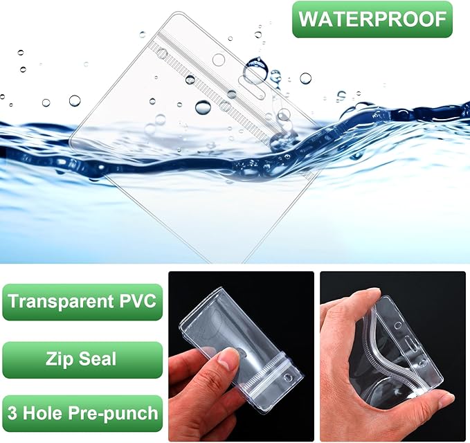 - Simple and useful: the ID badge lanyard is designed with a resealable zip lock that is easy to open and close, clear plastic horizontal name holder protects important paper badges or cards and keep them clean and dry, the lanyard can keep name card secure