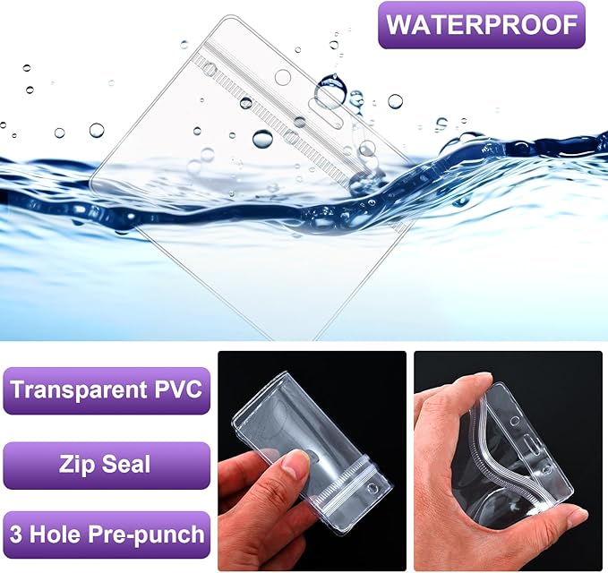 - Simple and useful: the ID badge lanyard is designed with a resealable zip lock that is easy to open and close, clear plastic horizontal name holder protects important paper badges or cards and keep them clean and dry, the lanyard can keep name card secure