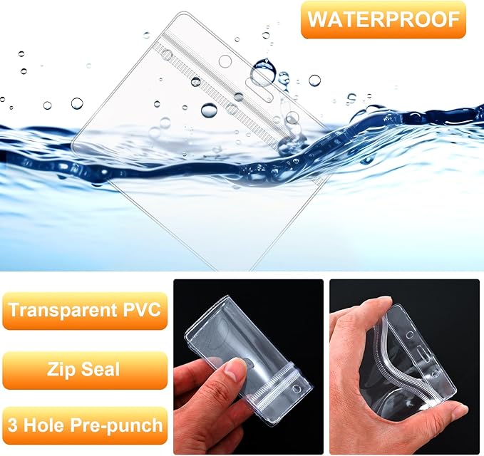 - Simple and useful: the ID badge lanyard is designed with a resealable zip lock that is easy to open and close, clear plastic horizontal name holder protects important paper badges or cards and keep them clean and dry, the lanyard can keep name card secure