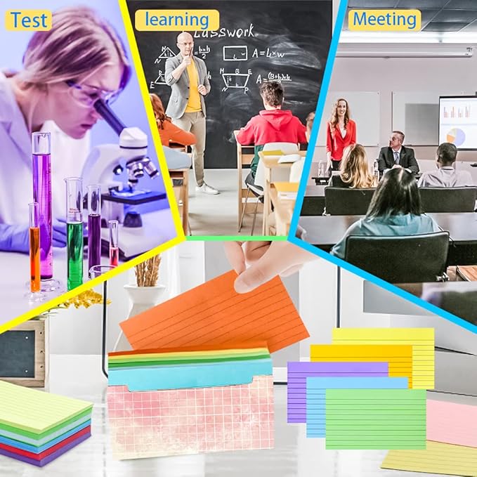 - Practical: These colored flash cards are good choice for note taking,listing making ,memorize words,prompt messages in the report or presentation,which will be an ideal assistant for exam preparing, personal statement, presentation, cue card and more