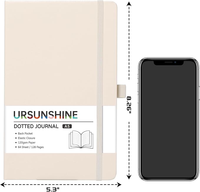 - PREMIUM THICK PAPER - 120 gsm dotted paper, our notebook journal is made of high quality acid free paper to help prevent from damages of light and airs to keep notes on the pages clearly. There are 128 pages/64 sheets in this ruled journal, which provide you with plenty space for planning or scheduling.