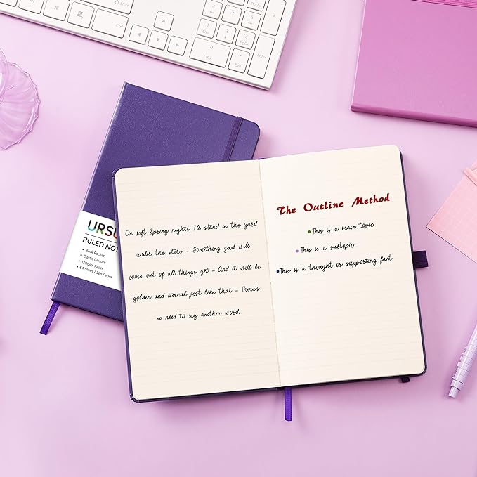 - LAY-FLAT 180° DESIGN - This classic lined notebook is designed to lay flat, which makes you easy to write and take notes efficiently. And firm thread-bound ensures pages don't get peeled away from the cover. This notebook provide you a high quality writing experience.