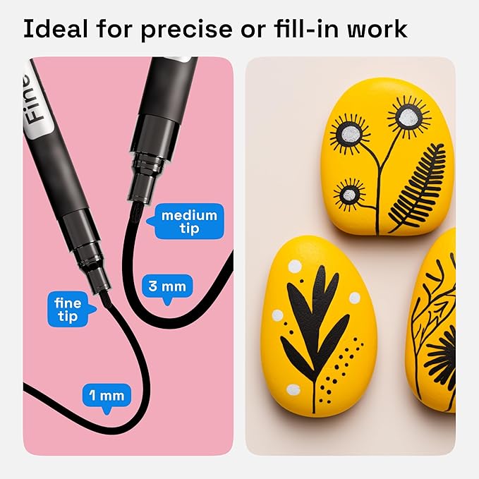 - Excellent for Drawing: This paint pen is water-resistant and doesn’t flood or jam, so the paint marker is perfect for paint pen fine point work. Use this paint pen for all sorts of detail work, calligraphy or art project.