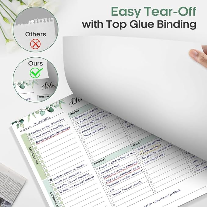 - Convenient Tear-Off Sheets: Our undated notepad offers 52 tear-off sheets, providing a fresh start each week. Simply detach a completed page and begin anew, keeping your to-do list up to date. Stay productive wherever you go or keep it handy on your desk.