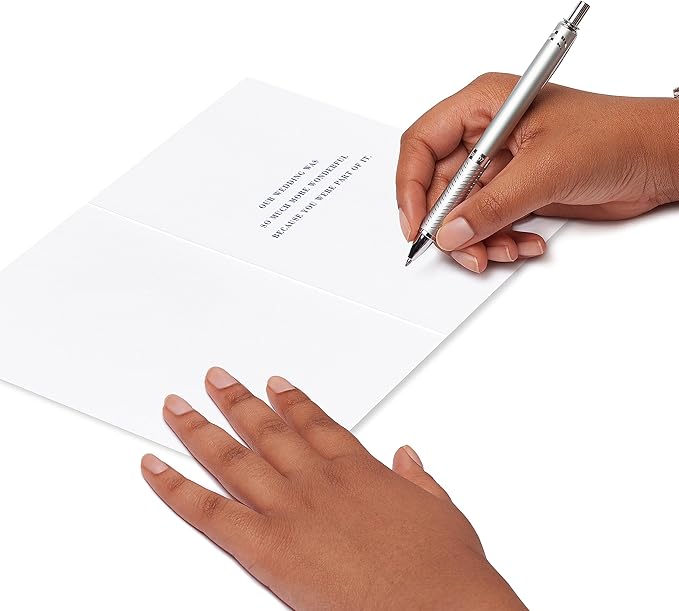 • Thank you cards feature rose gold accents, perfect for thanking your guests, bridal party or family after your big day! Envelopes included. Measures 4.625 in. x 6.75 in