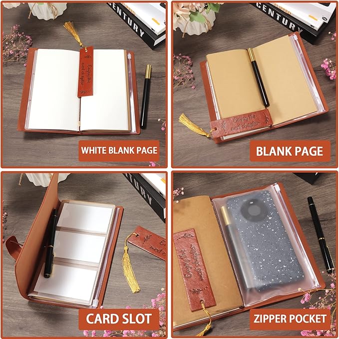 - Portable and versatile - (cover is about 7.9 x 4.7 inches, inside is about 7.5 x 4.1 inches) This traveler’s journal is ready to roll with the newly retired coworker in your life. With a section for holding business cards, two notebooks of blank paper- one ecru and one Kraft paper, and a plastic zip pouch at the back for pens, clips, and small ephemera, this leather covered journal will be just the thing they’ll need to write this new chapter in their life. Plus, a bonus bookmark!