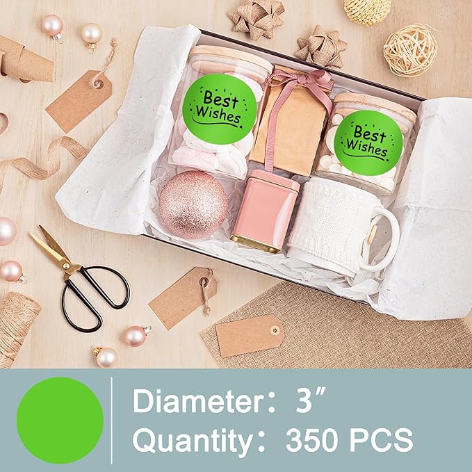Hybsk 3 inch Circle Color Direct Thermal Stickers Shipping Labels for Barcodes,Name Tag,DIY Logo Design,QR Code,Inventory– Compatible with Zebra,Rollo,Munbyn,and More-350 pcs (3 inch,Green)