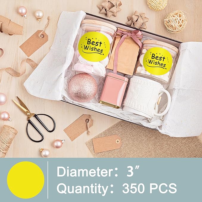 Hybsk 3 inch Circle Color Direct Thermal Stickers Shipping Labels for Barcodes,Name Tag,DIY Logo Design,QR Code,Inventory– Compatible with Zebra,Rollo,Munbyn,and More-350 pcs (3 inch,Yellow)