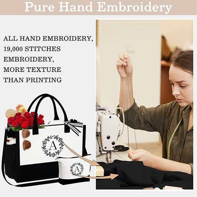 YOOLIFE Personalized Gifts for Women, Initial Canvas Tote Bag for Women Beach Bag Unique Best Friend Mom Gifts From Daughter Teacher Sister Wife Wedding Gifts Birthday Gifts Graduation Gift for Her L