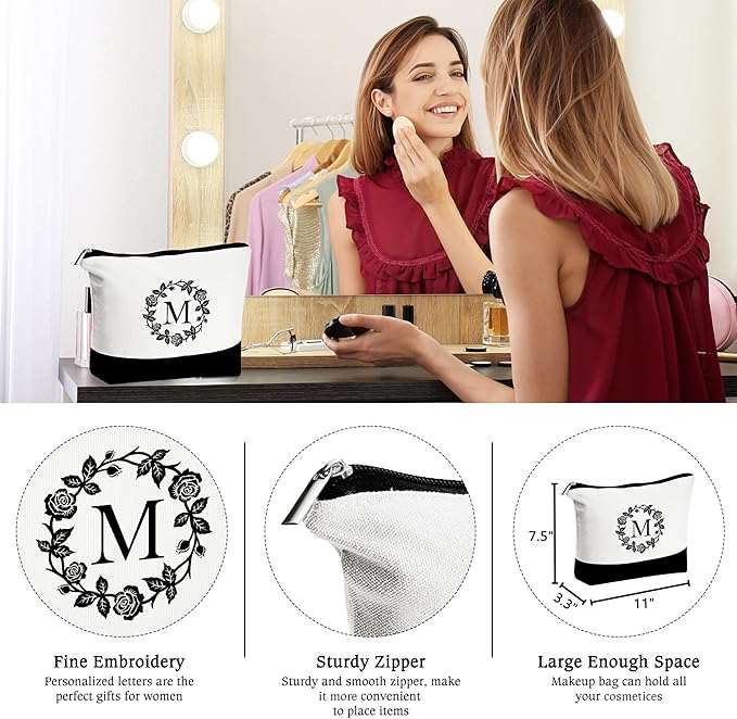 - 【SIZE & DURABILITY】: Initial canvas tote bag is 17" x 6.7" x 13.2", makeup bag is 11" x 3.3" x 7.5". The large capacity of the tote bag is enough to hold your everyday items. Our products are made of high quality natural cotton canvas material, all seams are reinforced and sewn to ensure durability.