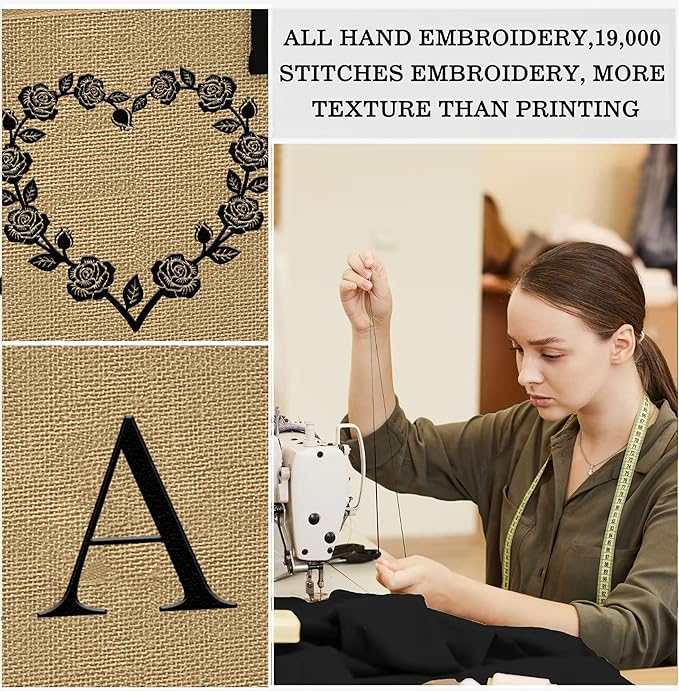 - 【PERSONALIZED GIFTS FOR MULTIPLE OCCASIONS】:Perfect combination makeup bag match. Conscientious design Heart rose wreath initial bag, let her know she's always connected to you just like the Letter Name. Unique Tote Bag for Women could be a perfect personalized gift for teacher appreciation, mom gifts, birthday gifts, friend gifts for women, bridesmaids gifts, graduation gifts, wife gifts, travel essential gifts, and weekend bags.