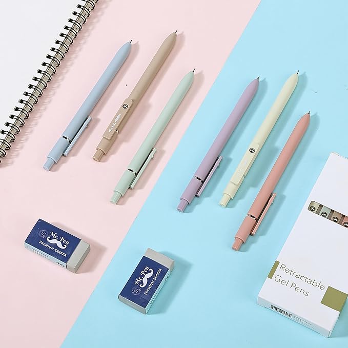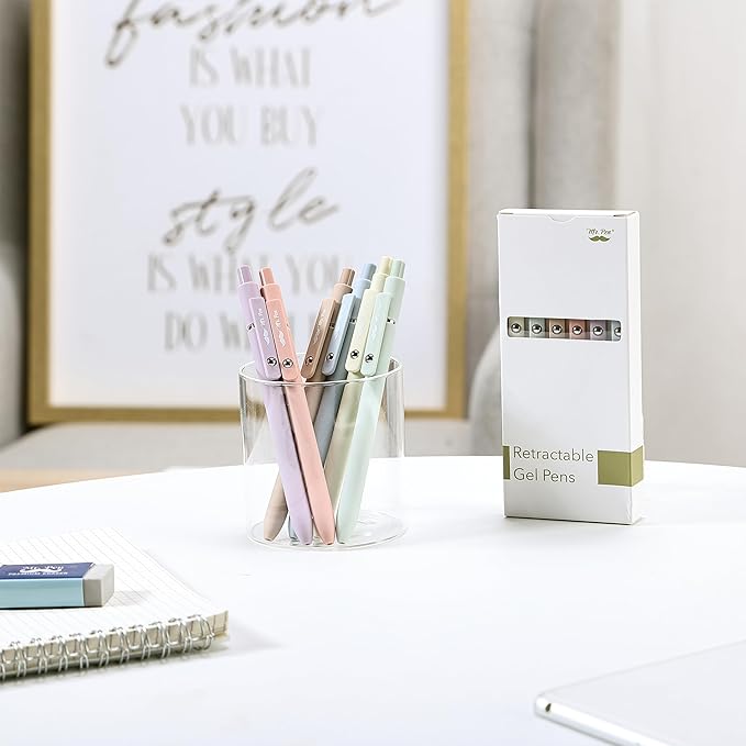- This pack includes 6 gel pens, each housed in a barrel of a unique soft and muted color, adding a subtle elegance to your pen collection.