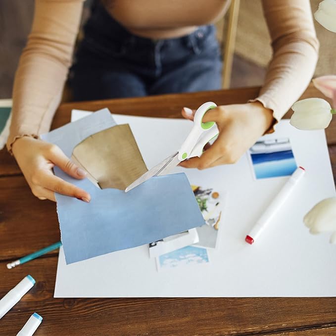 Left Handed Scissors for Adults Student Kids, 8" Heavy Duty Stainless Steel Lefty Scissors for Office, Home, Arts and Crafts, Green and White (2 Pack)