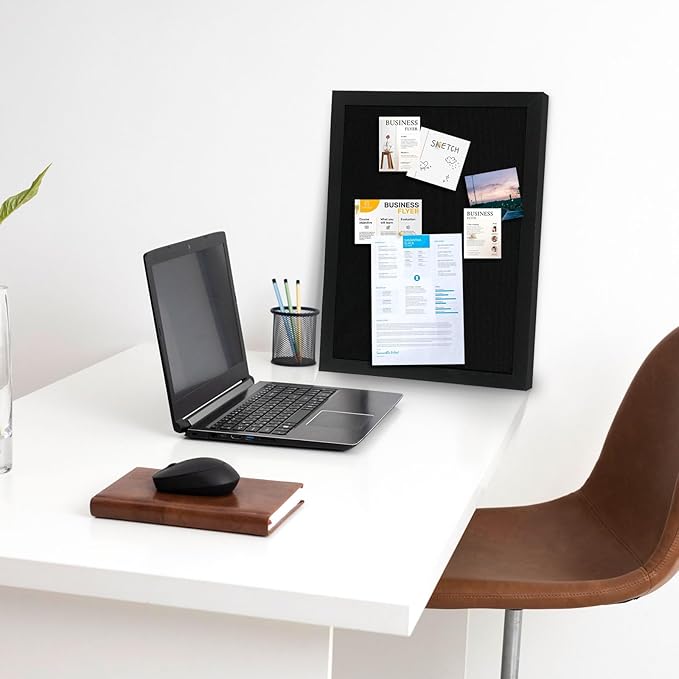 - [Multiple Use] The double-sided black bulletin board can be used as office wall decor, vision board, poster board and photo board. You can use push pins to pin your memos, pictures, paintings, and maps on it. It’s a perfect corkboard for office, home, and school.