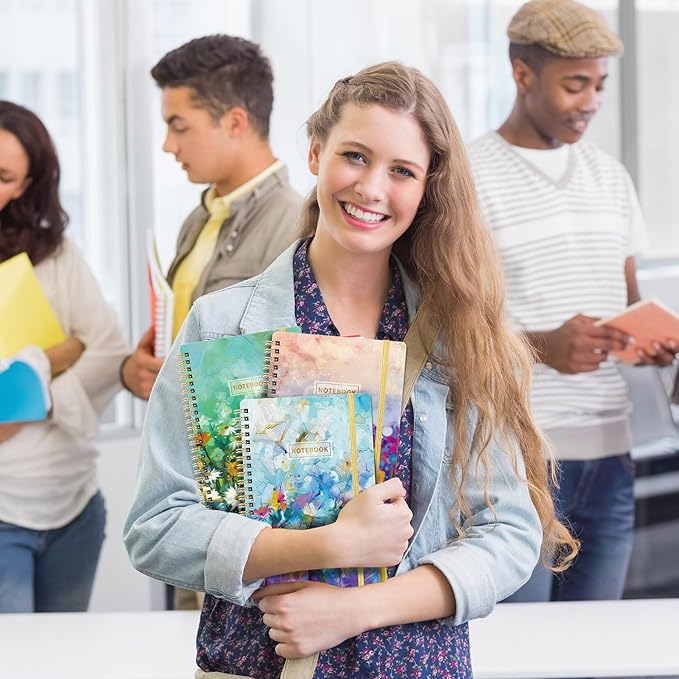 - 🌻 SPIRAL NOTEBOOK - 3 pack A5 spiral notebooks contains 3 × 160 pages with rounded corner for easier carrying, back pocket to store your loose item, and the elastic closure band to keep your notebook close when you don’t use it. The size of this journal is 6" × 8.3", which is a perfect size for carrying!