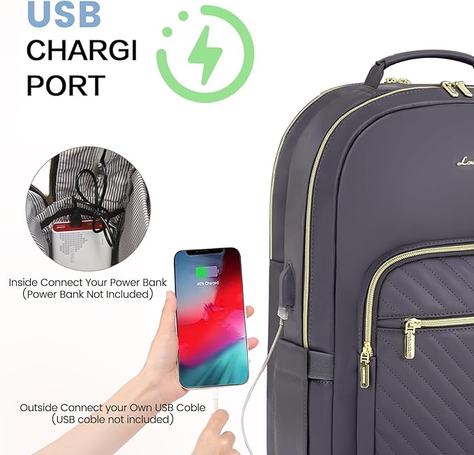 - 【Quilted Travel Backpack Airline Approved with USB Port】: Perfect size to fit under the seat on airplane. The luggage strap allows the quilted backpack fit on luggage/suitcase for easier carrying. With inside charging cable and outside USB port,the cute backpack provides a more convenient way to charge your devices. Back hidden anti theft pocket sits up against the wearer's body,protect your valuable items from thieves.