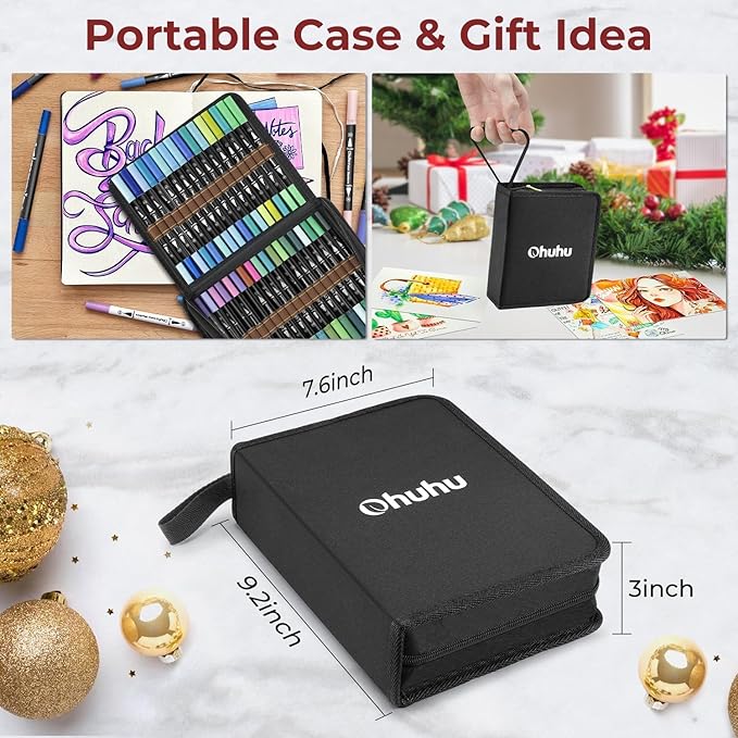 Ohuhu Markers for Adult Coloring Books: 100 Colors Brush Pens Dual Brush Fine Tip Drawing Pens Water-Based Coloring Markers for Calligraphy Bullet Journal with Carrying Case - Maui - Black