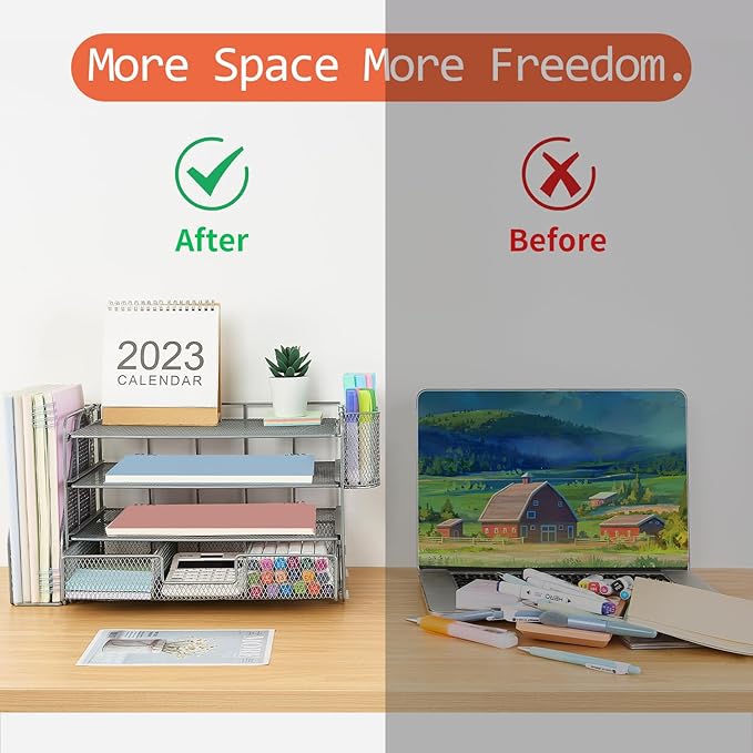 - đăDesktop DecorăOur desk organizer not only keeps your workspace organized but also adds a touch of elegance to your office or home decor. With its classic metal color, it complements any style and showcases your professional and clean work style. Choose OPNICE desk organizers and accessories for a workspace that looks and feels great