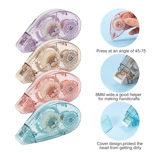 - Double Sided Tape Set: A set of 4 pieces of tape rolls in 4 different colors-purple/blue/pink/brown