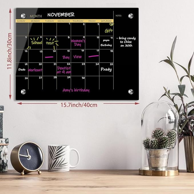 - Widely Application: This glass monthly calendar board comes with Days of the Week sections and Notes column. It can be used for scheduling, notes, messages, memos, calendar display and recording daily life. It is perfect for use in the office, home or any business environment