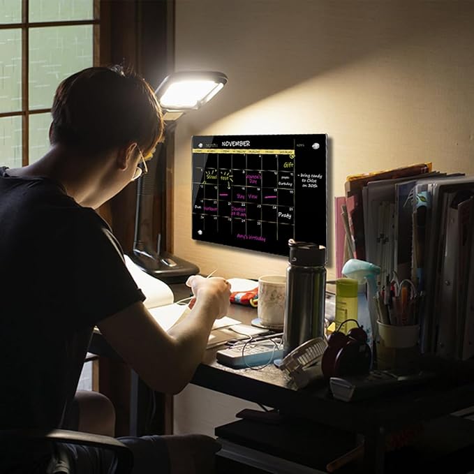 - Modern & Luxurious Design: This is a calendar dry erase board that combines black glass and golden lines. The golden planning layout is printed on frameless black tempered glass, and the modern design adds a touch of taste and luxury to your home or office