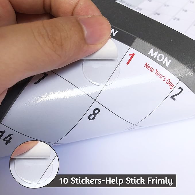 - REVERSIBLE CALENDAR 2024 – This 2024 yearly wall calendar features a double-sided flip design that can be hung vertically or horizontally and comes with 10 double-sided to help stick, very versatile. Choose the side that best fits your works/home/school space.