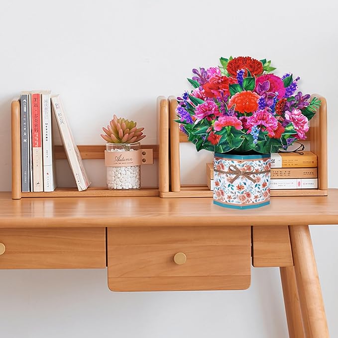 - Creat A Moment of Surprise: With the 3D carnation bouquet design, when open it, pop up a bunch of beautiful paper flowers. The receipiant will be touched and delighted by this card. This flower greeting card is exquisite and unique, perfect for your loved ones. This pop up flower card is more than just a present, in fact this piece of art will be long lasting memories worth cherishing.
