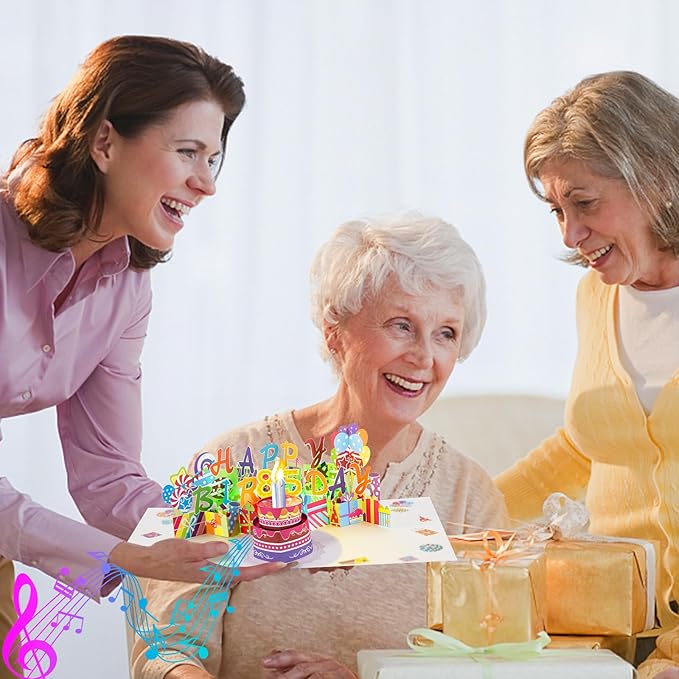 - Blow This LED Candle Like A Real One: Instead of those boring cards that do nothing or play no music, this lovely 3D musical birthday card features a pop up effect while playing a happy bday song with colorful lights flashing at once the 85 birthday person opens it. Their jaws will drop! Thanks to a fun LED candle, they can blow this candle like on a normal cake, then it will plays an audience cheers. Our unique greeting card is sure to make that special birthday person feel cherished and loved