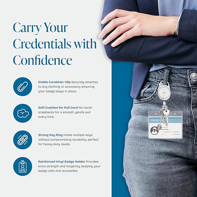 - 【Top Quality】Upgraded and reinforced construction makes the most solid and durable retractable badge holder of this kind on the market. we're different in all of these products that look the same!